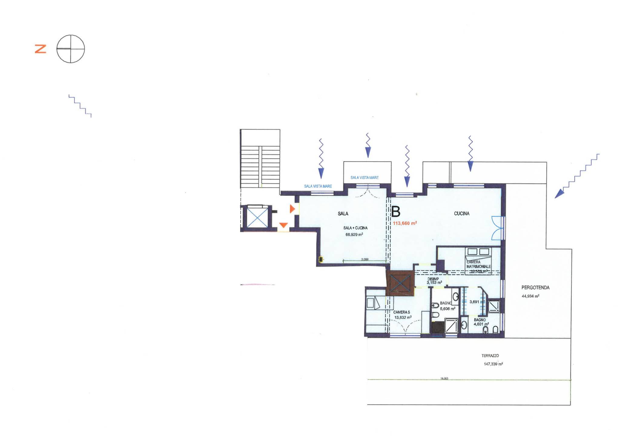 Proponiamo in vendita un attico esclusivo con ampio terrazzo panoramico, oggetto di una raffinata proposta di ristrutturazione firmata dall'architetto Adele Di Mattia. L'immobile, situato all'ultimo piano di una palazzina degli anni '80 ben mantenuta (con lavori di ammodernamento esterno già deliberati dal condominio), rappresenta una soluzione ideale per chi desidera vivere in un ambiente elegante e luminoso, con una spettacolare vista sul mare.